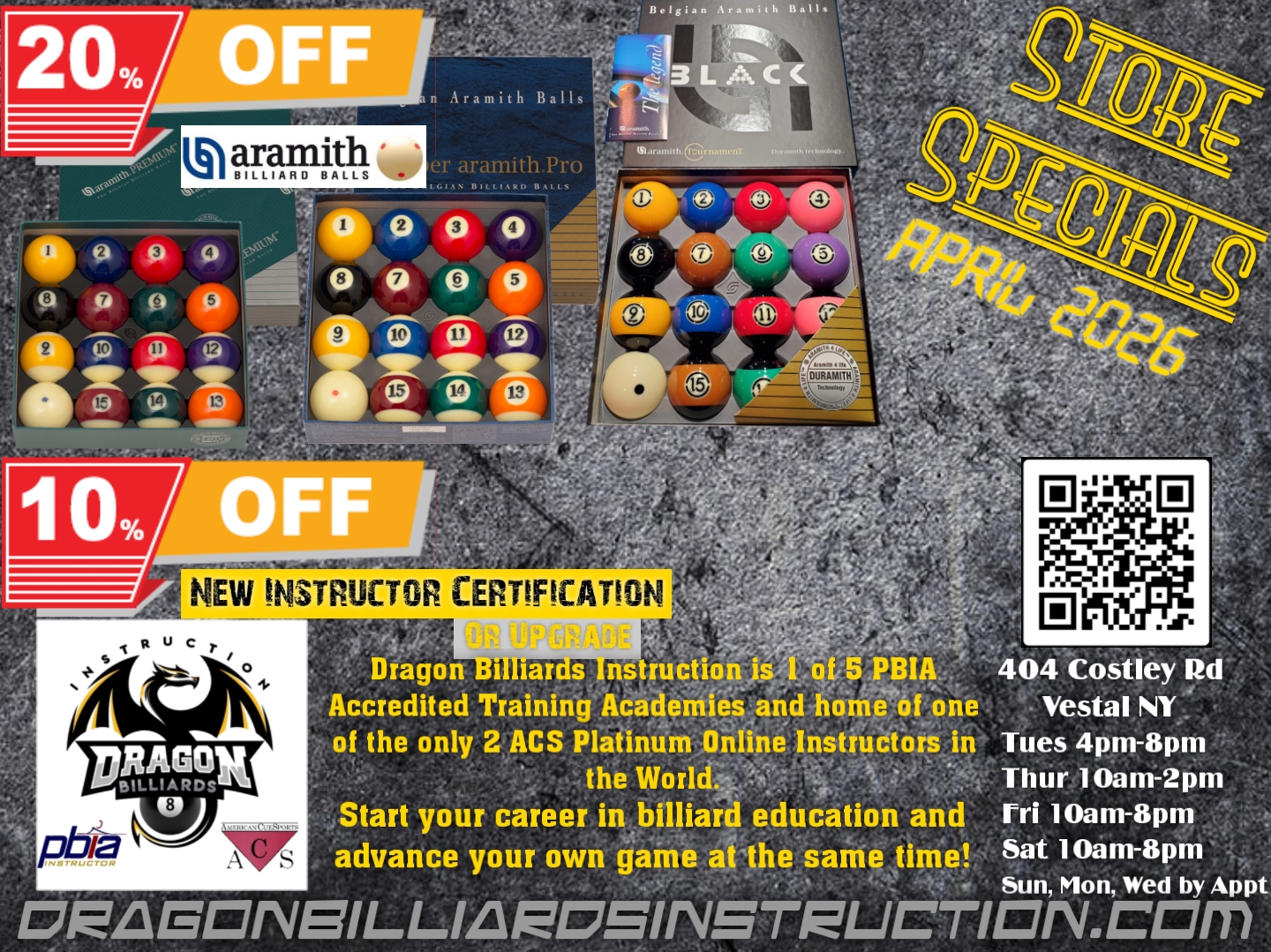 Are you tired of using flimsy pool cues, scrimping on supplies and relying on equipment that's on its last legs? Ready to take your game to next level? Run the table with billiard supplies, pool table repairs and lessons from Dragon Billiards Instruction in Vestal, NY.